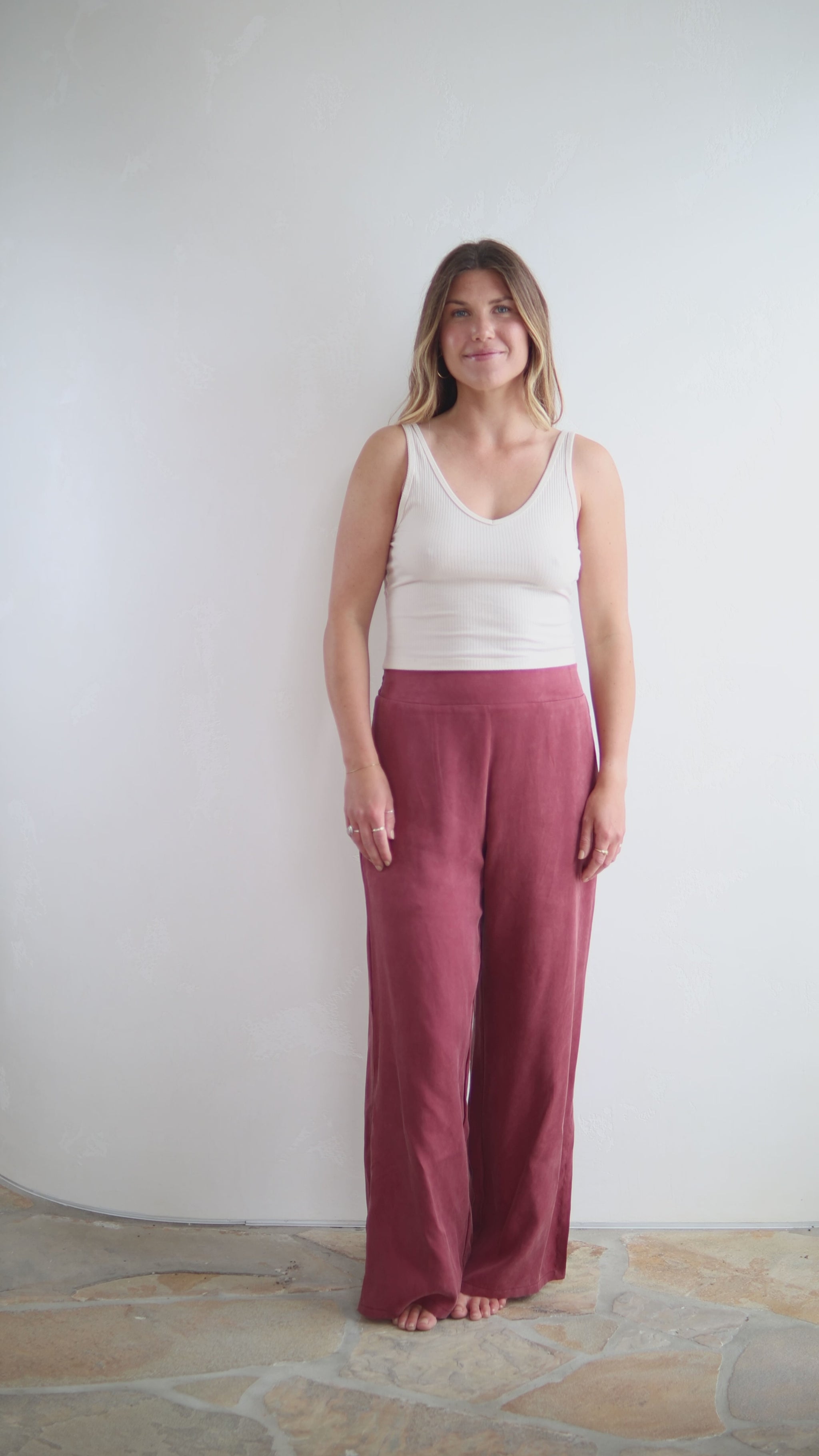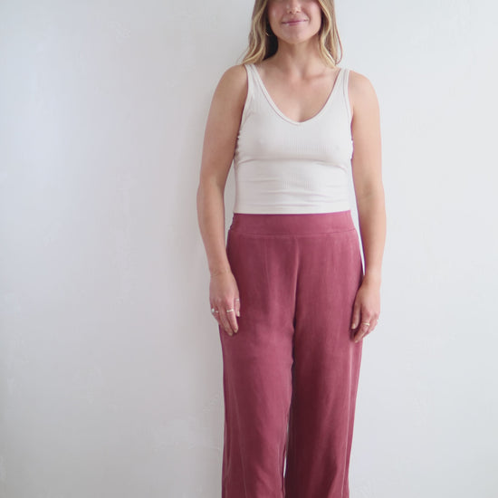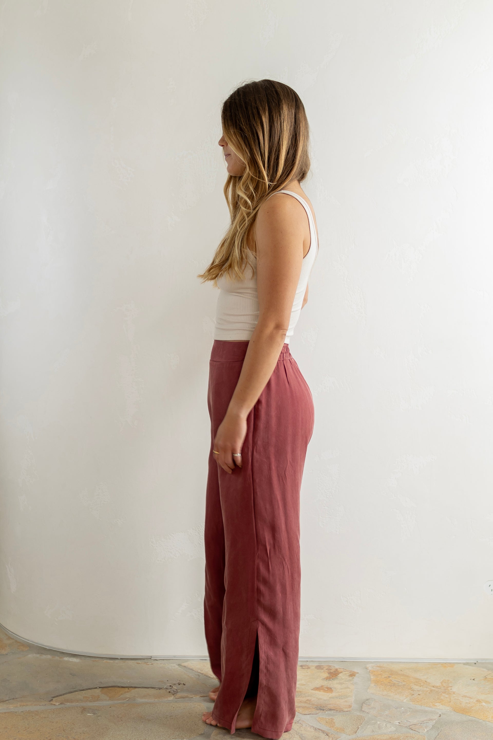 The Athena Pant will be the most luxurious addition to your lounge and sleepwear collection. Crafted from our beloved Vegan Silky fabric, these pants feature an elegant draped look with a small split in the side leg. High-waisted with invisible side zip to enhance your curves yet comfortable with a stretch band at the back of the waistband, and smooth at the front. Perfect for all occasions.