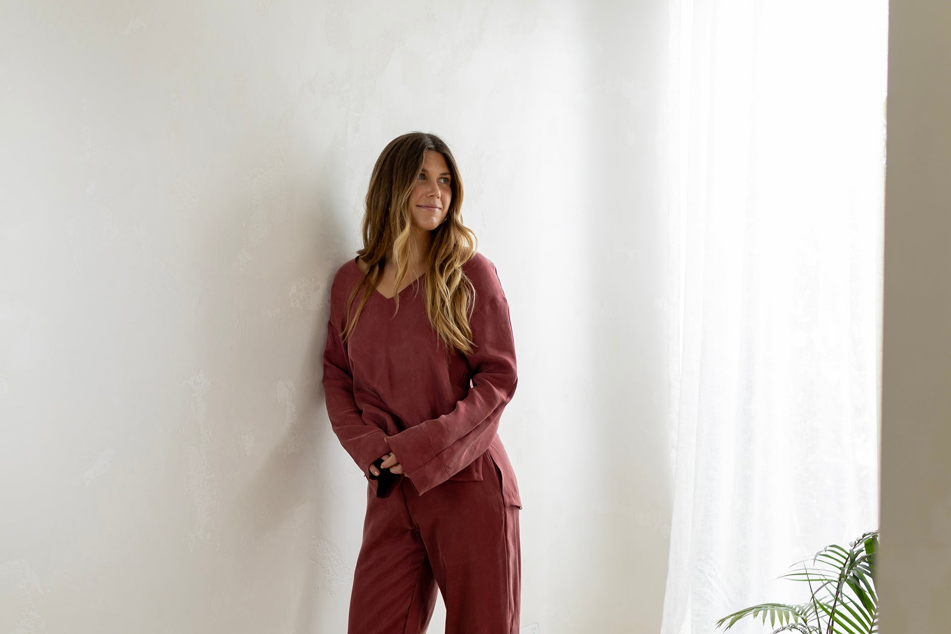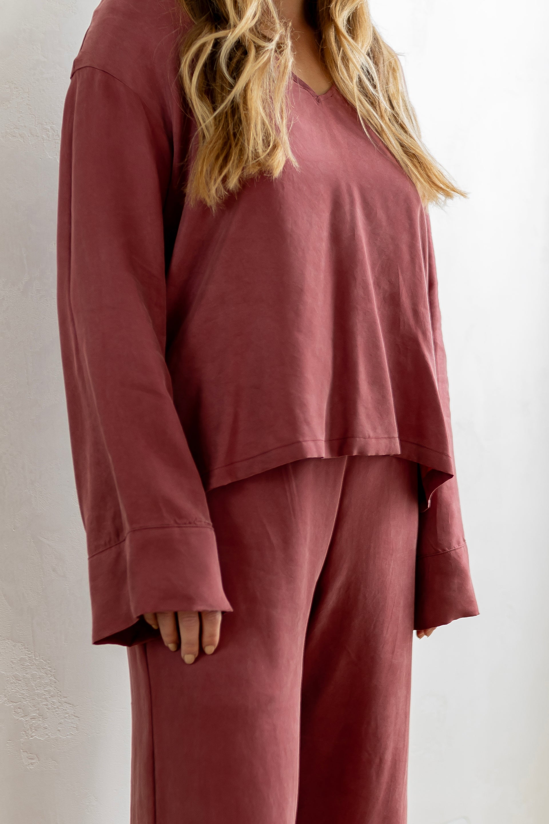 A sustainable and cruelty free silk alternative with a soft, peach skin, stonewashed feel. It is lightweight and breathable.